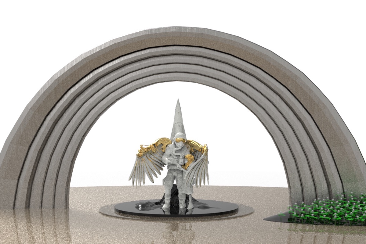 Дизайнерка Оксана Сарапій спроєктувала 15-метровий монумент «Привид Києва» та запустила петицію з пропозицією встановити його під столичною Аркою.