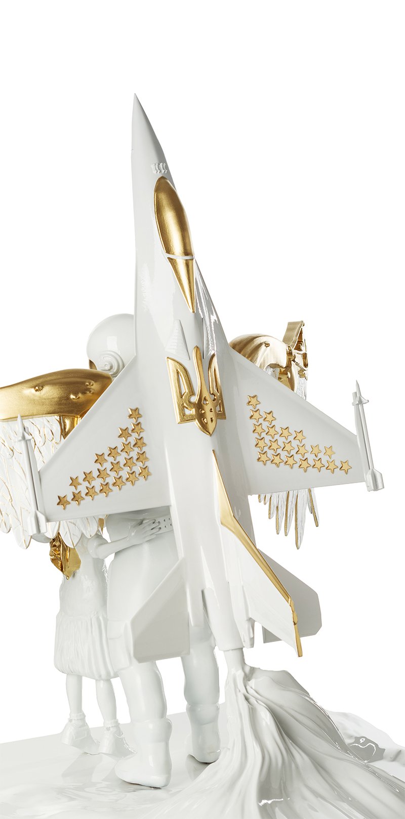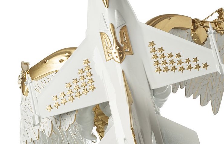 На сайті команди Sarapii &Co повідомляється, що професіоналізм українських льотчиків уособлюватиме білий з позолотою архангел з механічними крилами. Поряд зображено маленьку дівчинку, яка дарує «Привиду» аркуш з написом «Мій янгол».