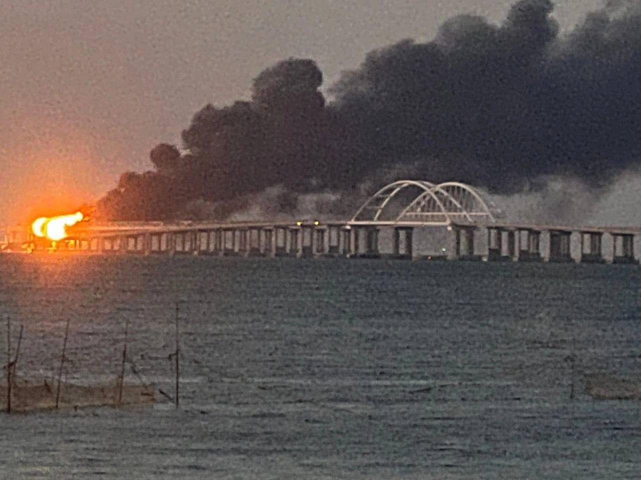 На одній з ділянок мосту через Керченську протоку вранці восьмого жовтня стався вибух, повідомляють місцеві окупаційні ЗМІ, російські телеграм-канали та Новая Газета. Про це також свідчать численні фото- та відеоматеріали в соцмережах.