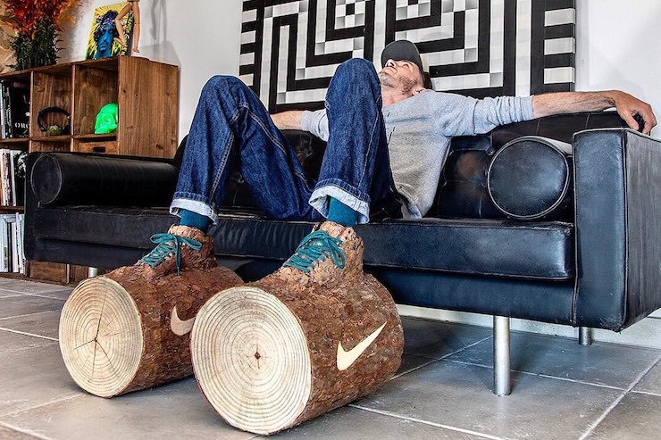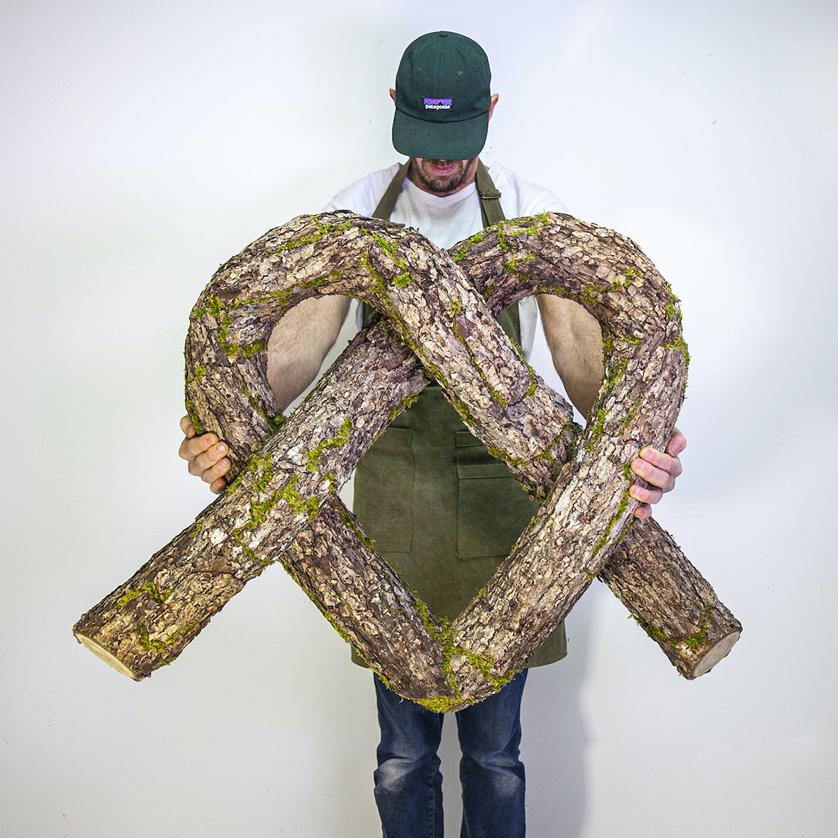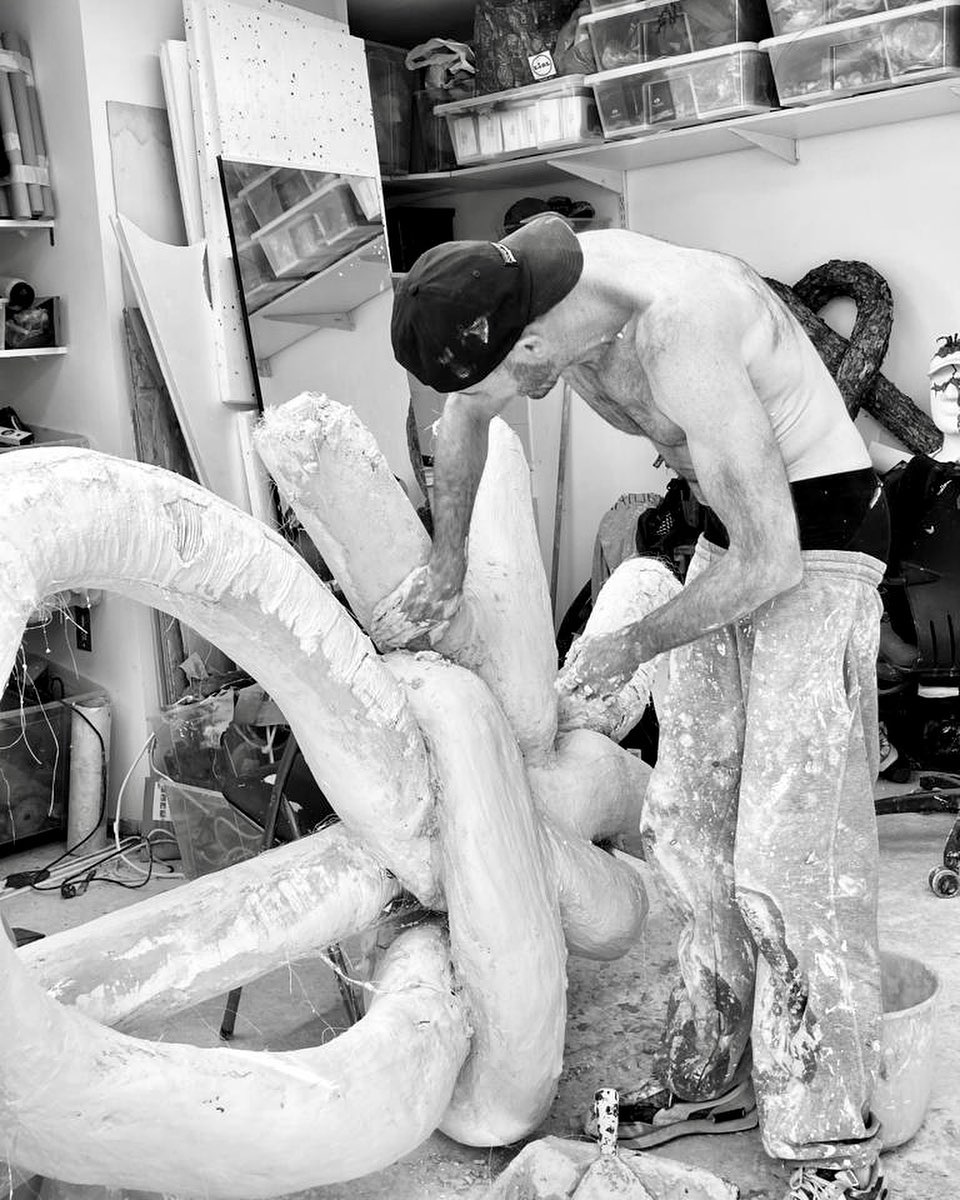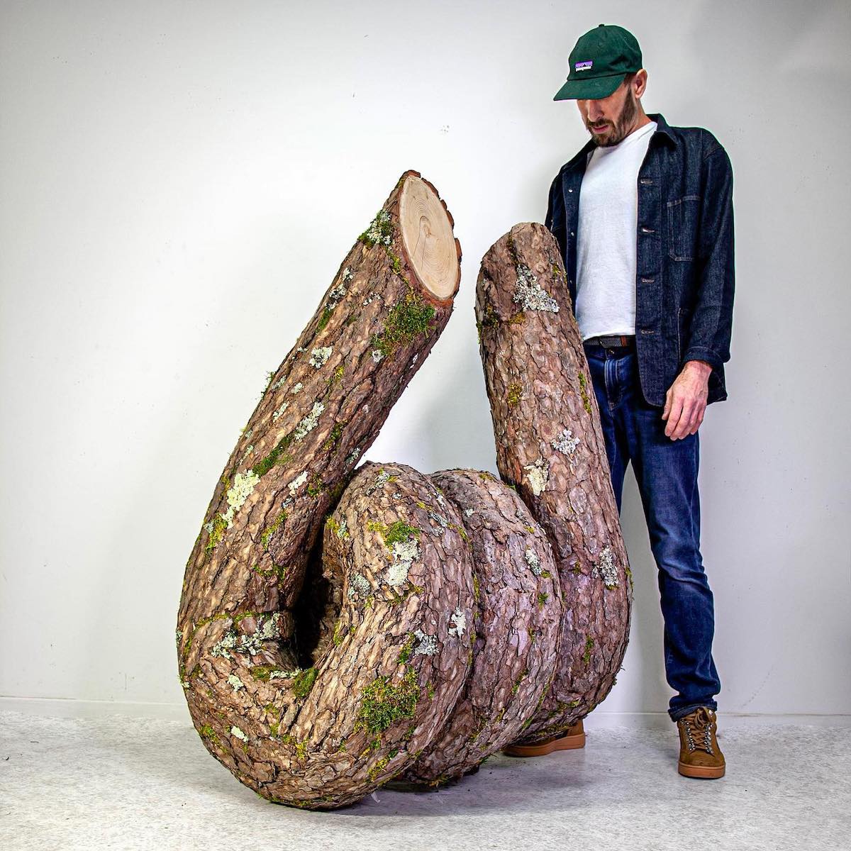 Днями він презентував новий проєкт TWIST: скульптури у вигляді покручених стовбурів дерев. Гіне робить гіпсові форми, які обклеює корою дерев і мохом.