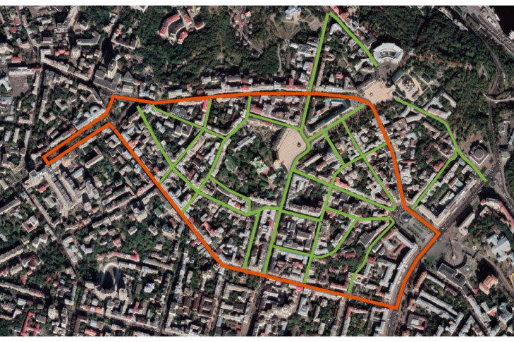 Всередині цього транспортного кола організується пішохідна зона. Велосипедисти, користувачів електросамокатів і моноколес зможуть рухатися зі швидкістю не більш як 6 км/год.
