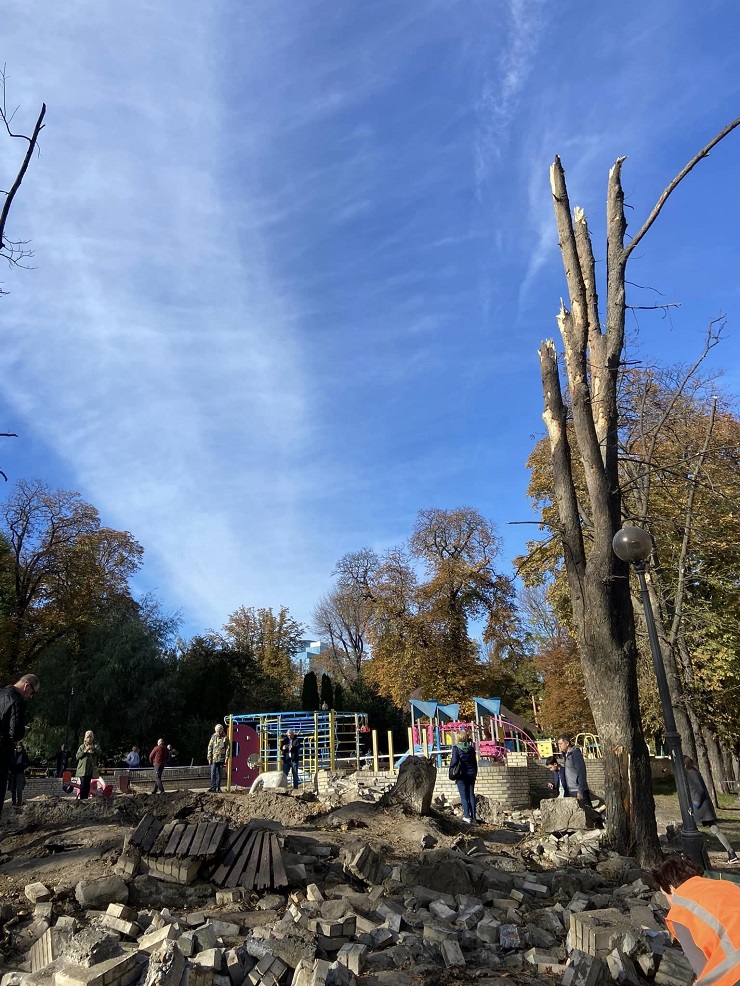 Київський парк імені Тараса Шевченка зазнав збитків на 2,25 мільйона гривень внаслідок ракетного удару, який росіяни завдали по центру столиці десятого жовтня. Були знищені дерева, газон і дитячий майданчик, повідомив керівник Київзеленбуду Олексій Король.