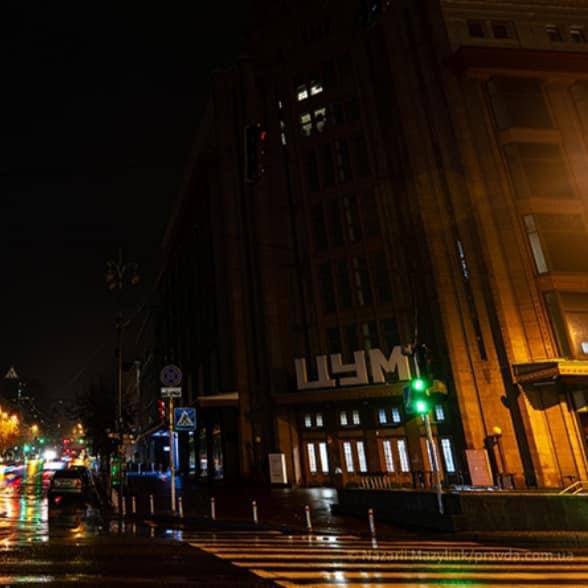 «Вікна ЦУМа на Хрещатику заклеєні зсередини чорною плівкою, щоб не так нахабно виглядали п’ять поверхів яскраво освітлених торгових площ, коли кияни сидять вдома без світла», — пише телеграм-канал Чарівний Київ.