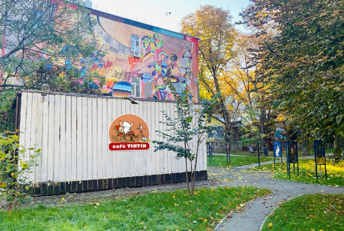У київському сквері Інтелігентів, що на розі вулиць Олеся Гончара та Великої Житомирської, відкрилося перше в Україні бельгійське Cafе Tintin. Літературна кавова франшиза є одним з найвідоміших у світі «провідників» бельгійської та франкомовної культури.