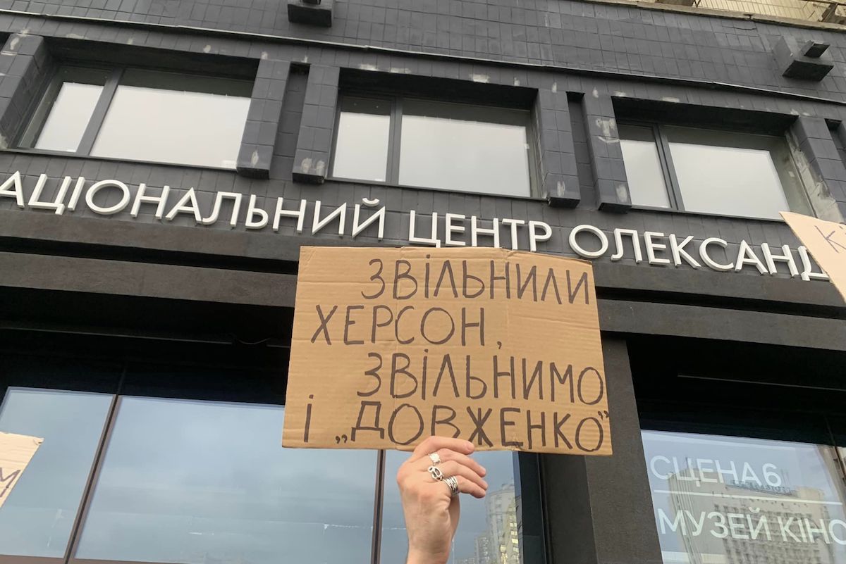 12 листопада кількасот киян зібралися під Довженко-Центром, що біля метро «Голосіївська», на акцію протесту проти втручання в роботу інституції та зміни керівництва.