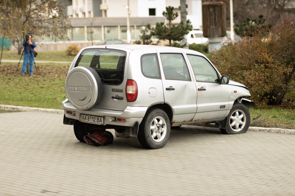 Захід переривали через повітряну тривогу та про повідомлення про мінування автомобіля (на фото нижче) — «вибухівкою» виявилася сумка з голубцями та майонезом.