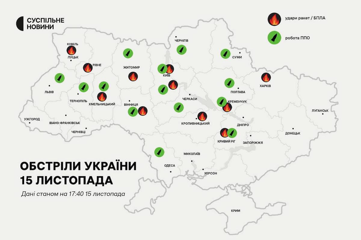 Загалом Росія випустила територією України 70 крилатих ракет Х-101/Х-555, 20 «Калібрів» і 10 дронів-камікадзе. Понад 70 ракет було збито українською ППО. За масштабом ця атака перевищила обстріли енергоінфраструктури 10 жовтня.