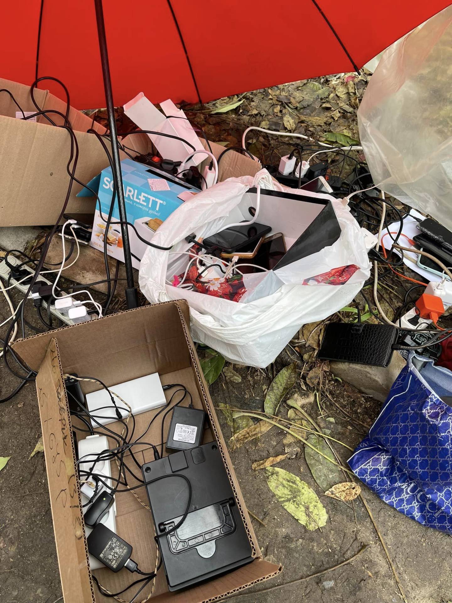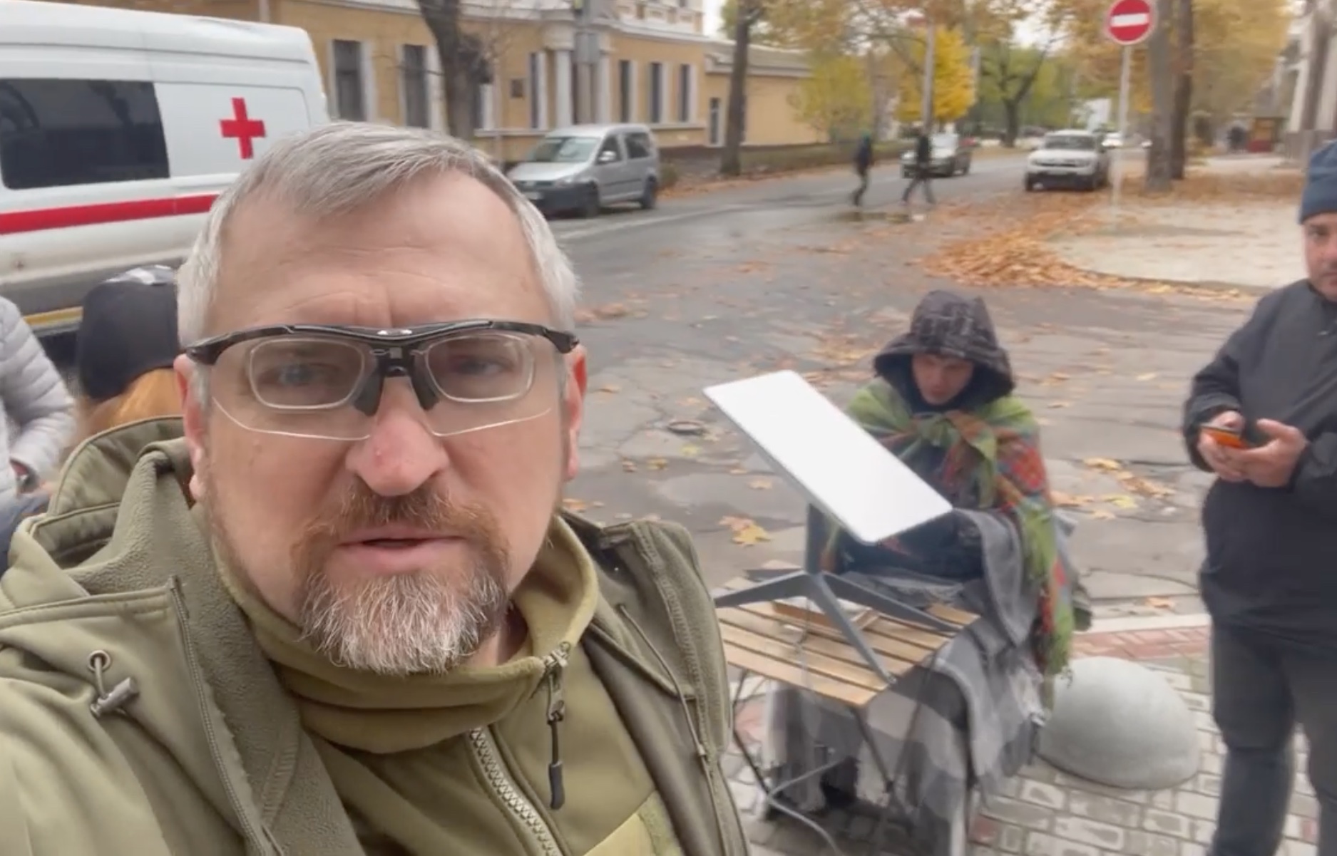 Жителі звільненого Херсона стоять у чергах до вільних розеток і виходять на площі в центрі міста, щоб зловити мобільний зв’язок та інтернет. Фото та відео опублікував депутат Олександр Федієнко.