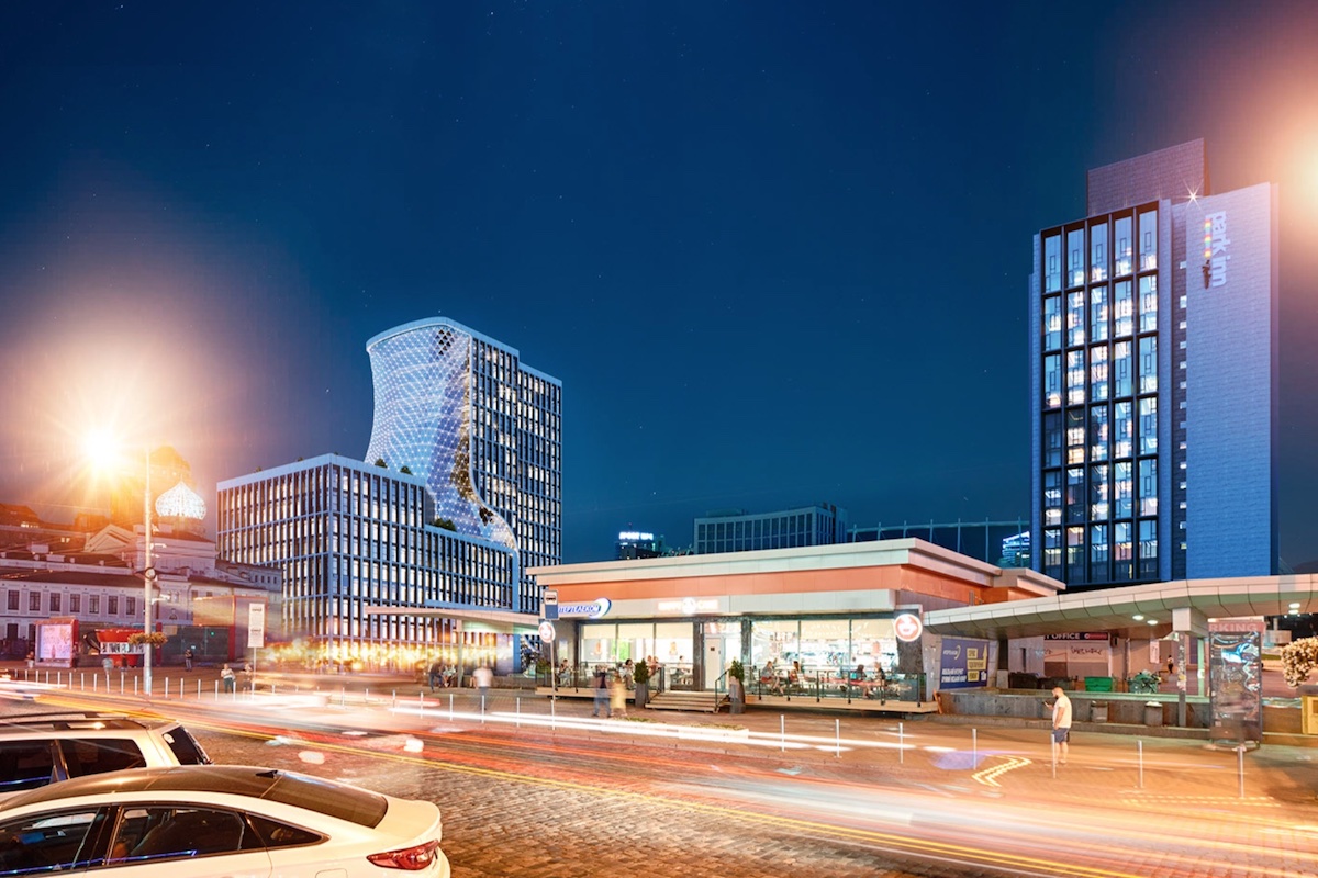 Крім зведення 21-поверхової башти T-TOWER, проєкт також передбачає реконструкцію площі й оновлення фасаду готелю Park Inn.