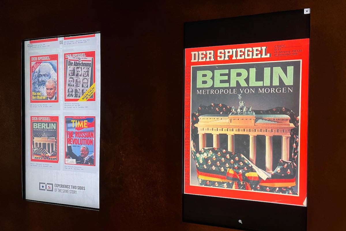 Крім архівних відео та реконструкцій ключових подій епохи, музей використовує віртуальну реальність. VR-окуляри показують глядачам досвід східняка Ганса Конрада Шумана, який найнявся охороняти Берлінську стіну під час її спорудженні й перестрибнув її. Момент стрибка зі Східного у Західний Берлін потрапив на фото, яке стало одним з найвідоміших знімків Холодної війни.