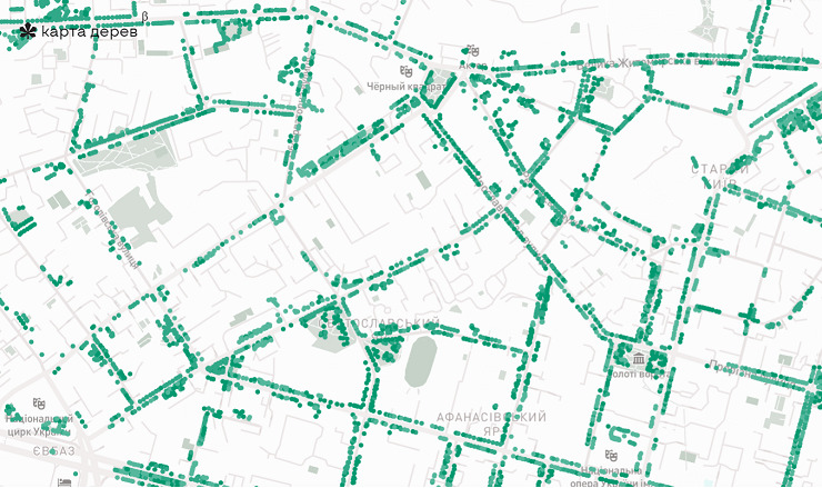 Громадська організація «Урбанина» створила мапу дерев Києва. Вона містить 30 тисяч насаджень з вулиць центру столиці.