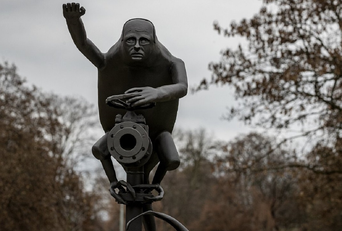 Автором скульптури під назвою «Демон Ахріман» (за назвою демона в перській міфології) є чеський митець Душан Достал. Вона зображає Путіна в образі гобліна, який закручує газовий кран. Він пояснює, що скульптура зображає абсолютне зло та символізує відповідального за зростання цін на енергоносії. Крім того, Путін тримає підняту в нацистському вітанні праву руку.
