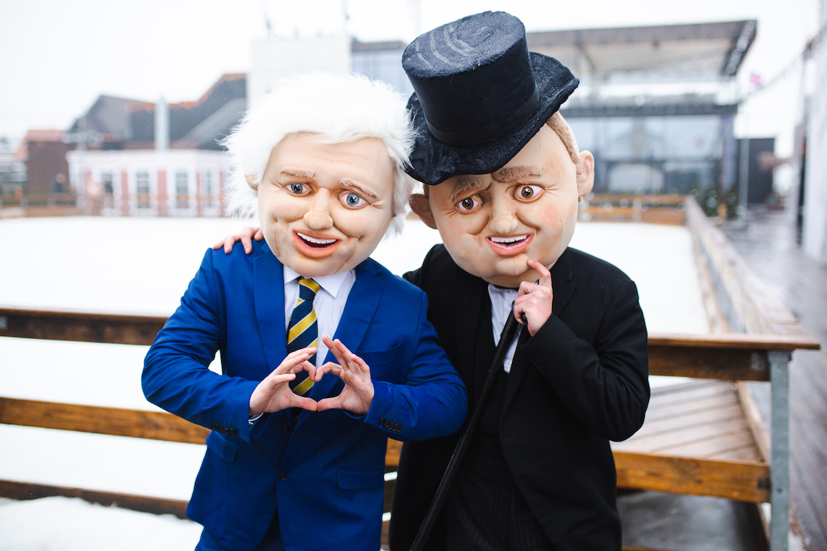 Для акторів у образах Бориса Джонсона та Вінстона Черчиллна облаштували власні резиденції. Сер Вінстон із сигарою в зубах розмістився в ресторані зі своїми улюбленими речами: друкарською машинкою, книжками та чаркою віскі.