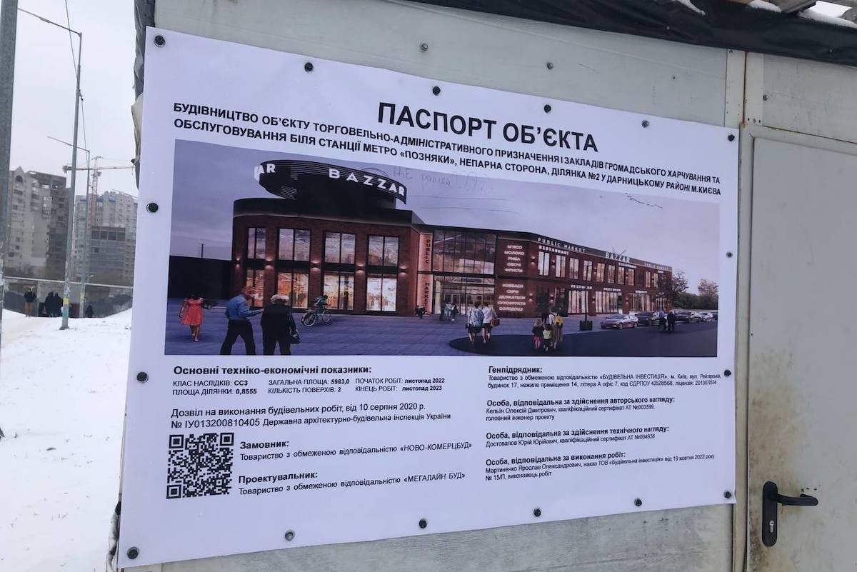 Двоповерховий ТРЦ під назвою BAZZAR будує компанія «Ново-Комерцбуд». Торік Київрада поновила забудовнику договір оренди ділянки.