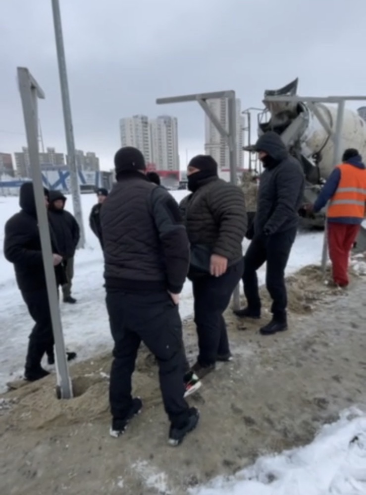Люди збираються на протести та намагаються зупинити будівництво. На захист забудови виходять чоловіки, за зовнішнім виглядом подібні на «тітушок», зазначають місцеві жителі.
