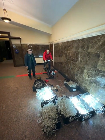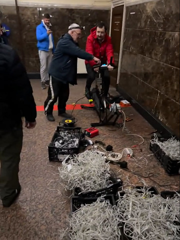 Новорічну ялинку на Центральному вокзалі Києва підсвітили завдяки механічному генератору з педалями. Про це повідомив голова правління «Укрзалізниці» Олександр Камишін.