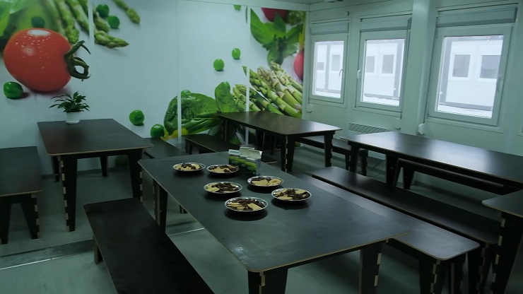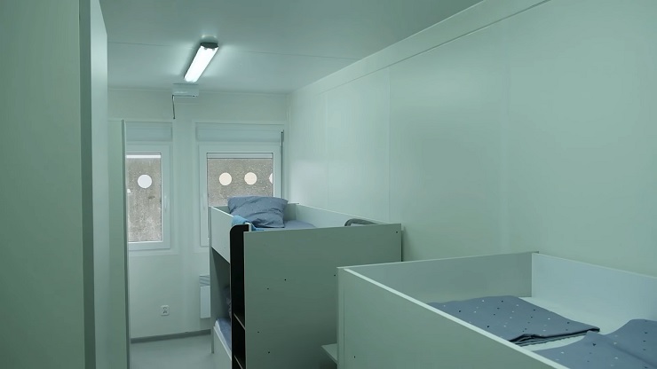 Модульне містечко складається з двох секцій, кожна з яких містить 22 кімнати для проживання.