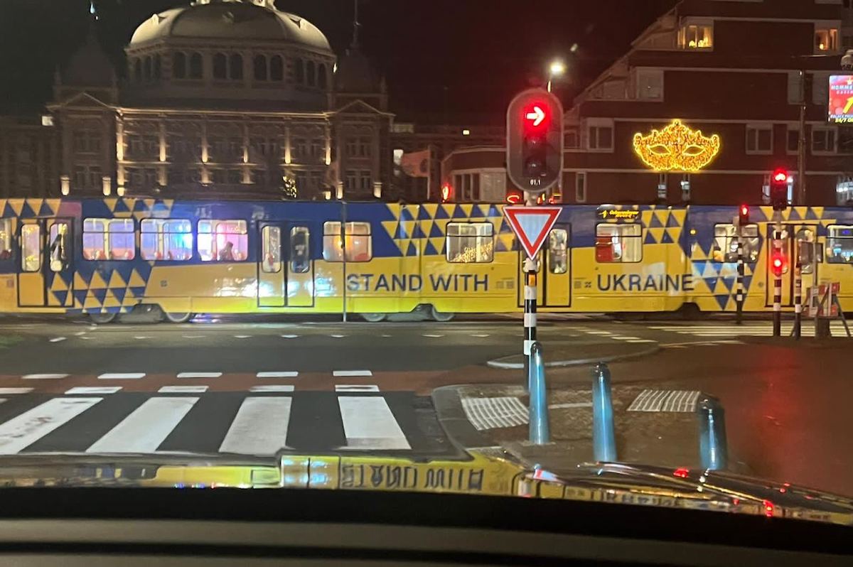 У Гаазі, Нідерланди, почав курсувати жовто-синій трамвай з логотипом платформи UNITED24 та закликами підтримати Україну. На вагонах розміщено QR-коди, за якими можна перерахувати гроші.