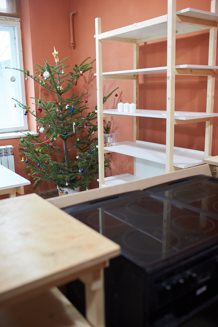 У приміщенні повністю змінили внутрішнє планування та всі комунікації. Окрім кімнат для переселенців, тут облаштували ще спільну на один поверх кухню та санвузли на дві-три кімнати.