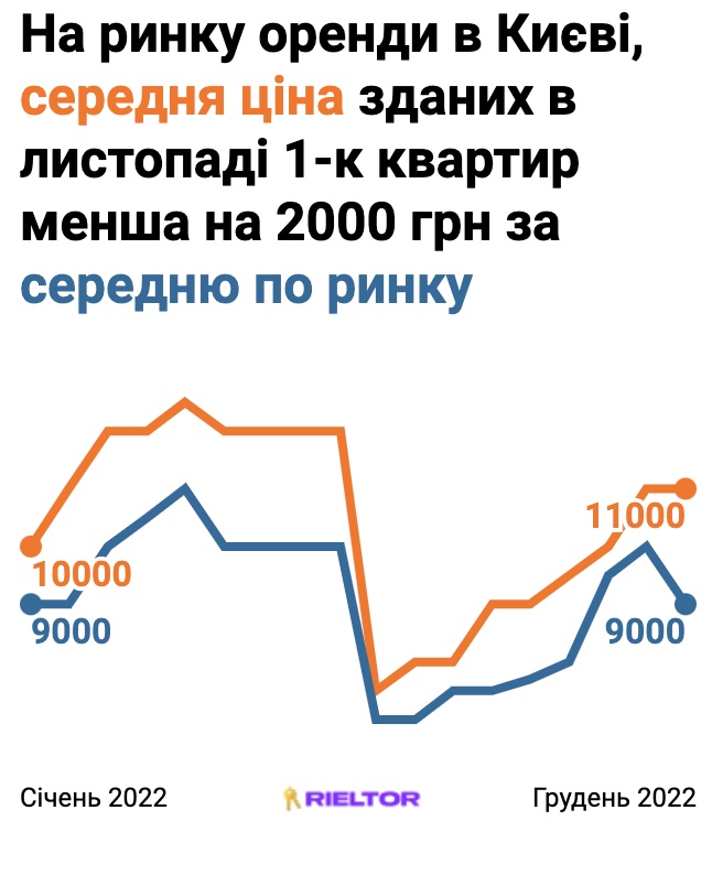 Середня вартість оренди однокімнатної квартири в Києві — саме серед тих, що були реалізовані, — зросла з лютого на тисячу гривень і складає 11 тисяч гривень на місяць. Інтерес до оренди в столиці повністю відновився ще у липні.