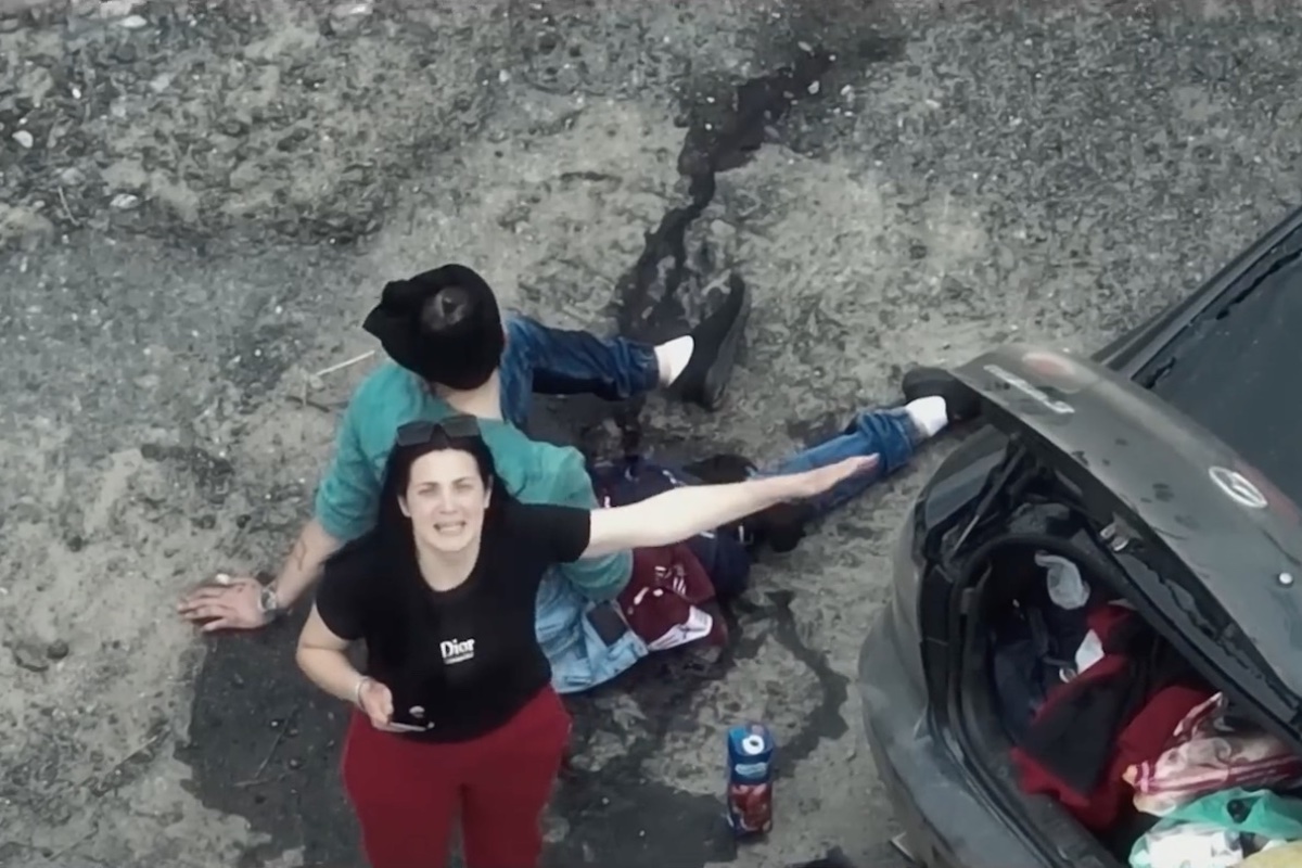 Влітку пара з Бахмута поїхала рятувати батьків із зони бойових дій. Біля Ізюма автівка під’їхала надто близько до російських позицій і потрапила під обстріл. Жінку з тяжко пораненим чоловіком помітив дрон військових 93-ї бригади «Холодний Яр». Оператор дрона почав скеровувати жінку до українських позицій.