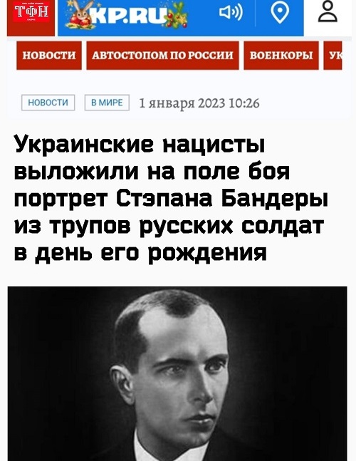 Все почалося з скриншоту новини з російського сайту «Комсомольська правда»: «Українські нацисти виклали на полі бою портрет Степана Бандери із трупів російських солдатів в день його народження». Скриншот та новина – фейкові.