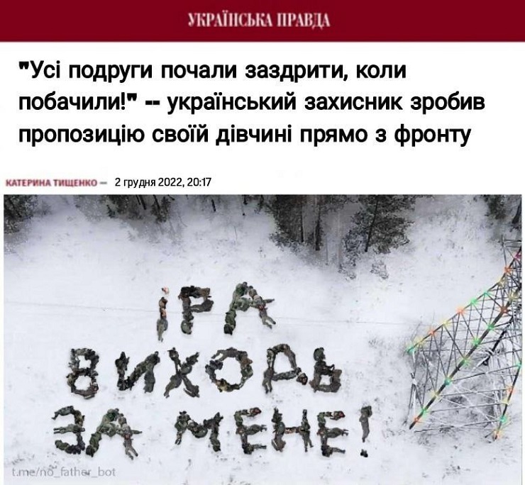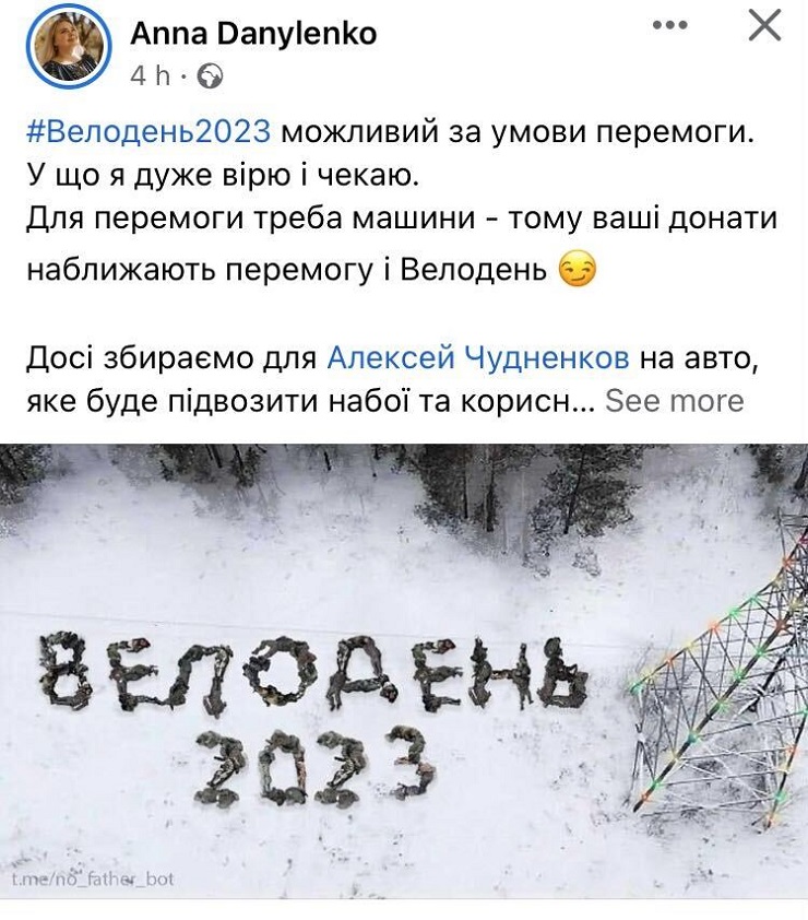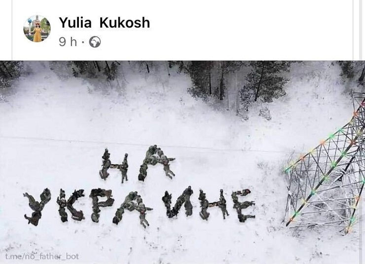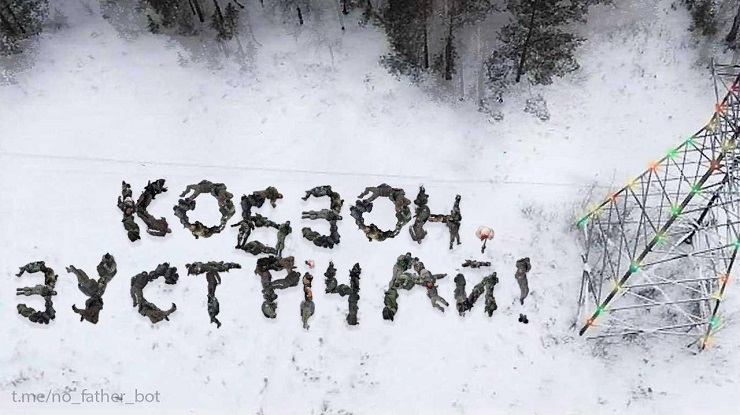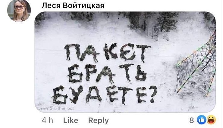 За допомогою Telegram-бота «Папка в пакєтє» користувачі Facebook створюють та поширюють картинки з фразами, викладеними тілами російських солдатів.