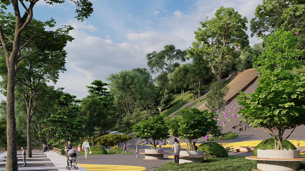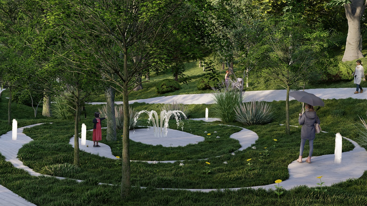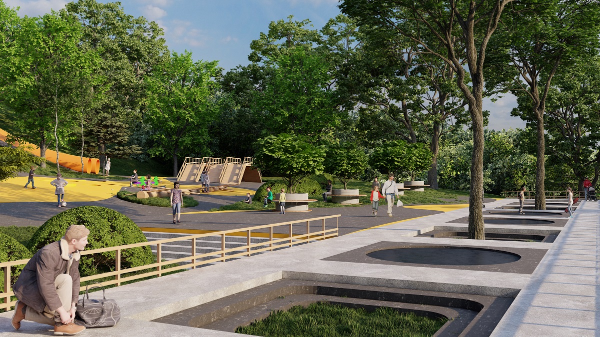 Архітектори пропонують облаштувати дитячий майданчик з врахуванням наявного рельєфу ділянки. Також проєктом передбачена парковка на понад 60 автомобілів та сім автобусів – вона також може виконувати функцію перехоплюючої парковки зі сторони в’їзду в місто зі львівського та тернопільського напрямків.