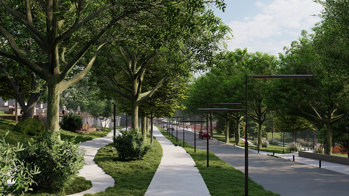 Команда запропонувала облаштувати вулицю з двома смугами руху, тротуарами та двосторонньою велодоріжкою вздовж однієї сторони вулиці.
