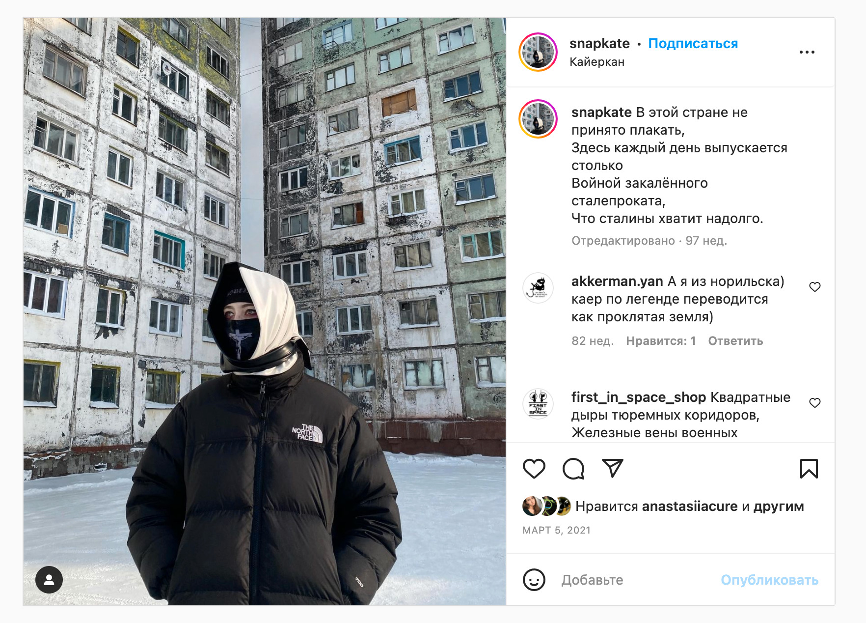Виклавши у свій інстаграм фотографії на тлі маріупольських панельок, вона намагалася пояснити, що таким чином «документує трагедію», а не смакує її. Однак через негативні коментарі зрештою видалила світлини.