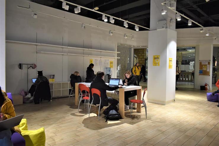 Коворкінг працює на другому поверсі ТРЦ щоденно з 10:00 до 20:00. Однак на час повітряних атак він зачиняється.