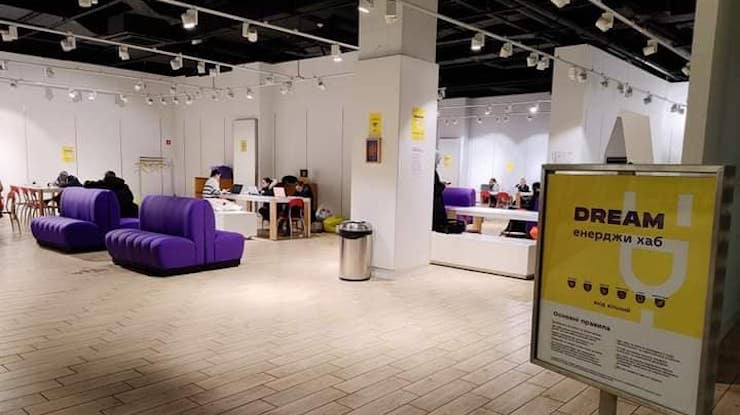У торговельно-розважальному центрі Dream Yellow відкрили «енерджи-хаб», де є безкоштовні місця для роботи, вай-фай, розетки та питна вода.