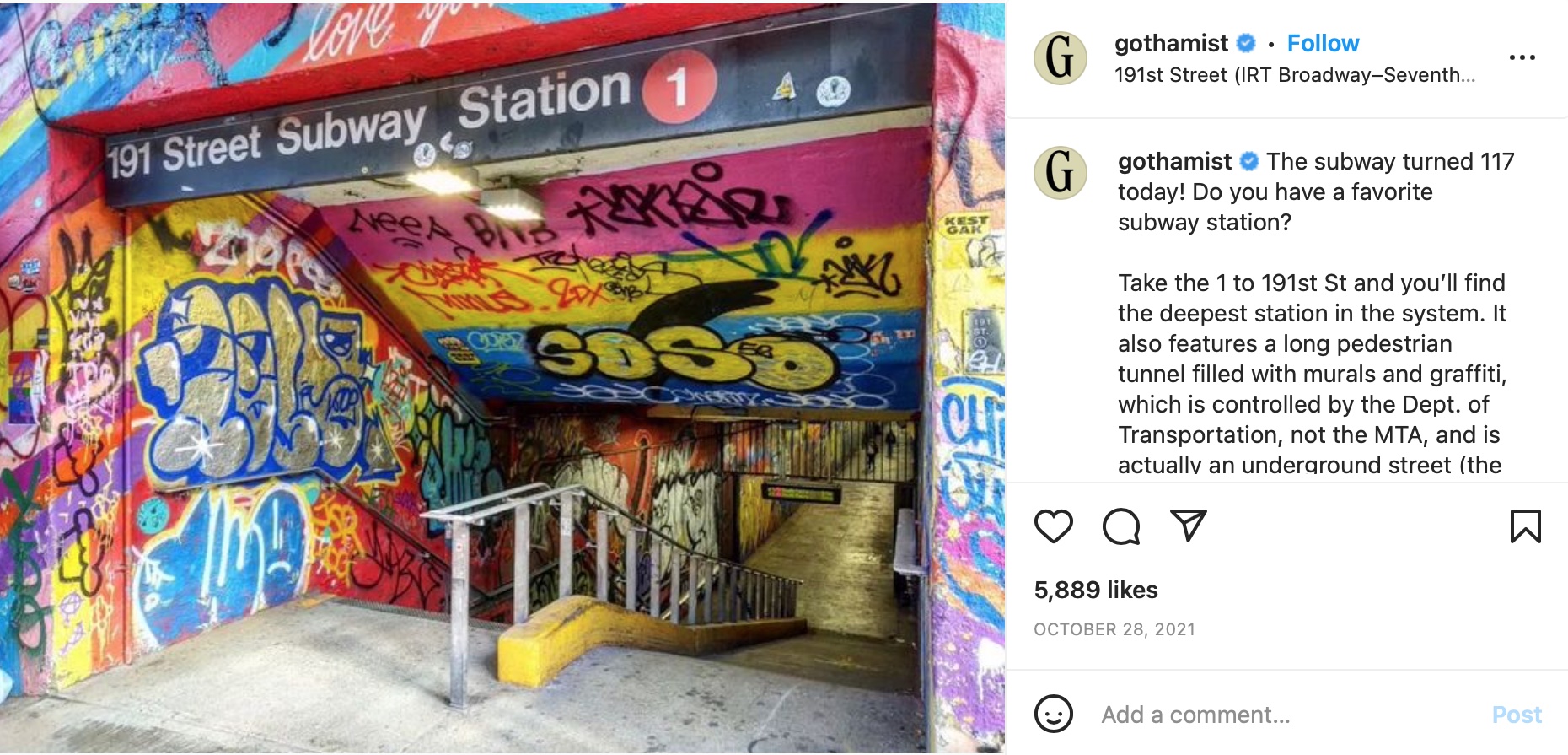 Підземний тунель завдовжки 270 метрів у районі Вашингтон-Хайтс веде до найглибшої станції нью-йоркського метрополітену — «191-а вулиця».