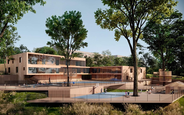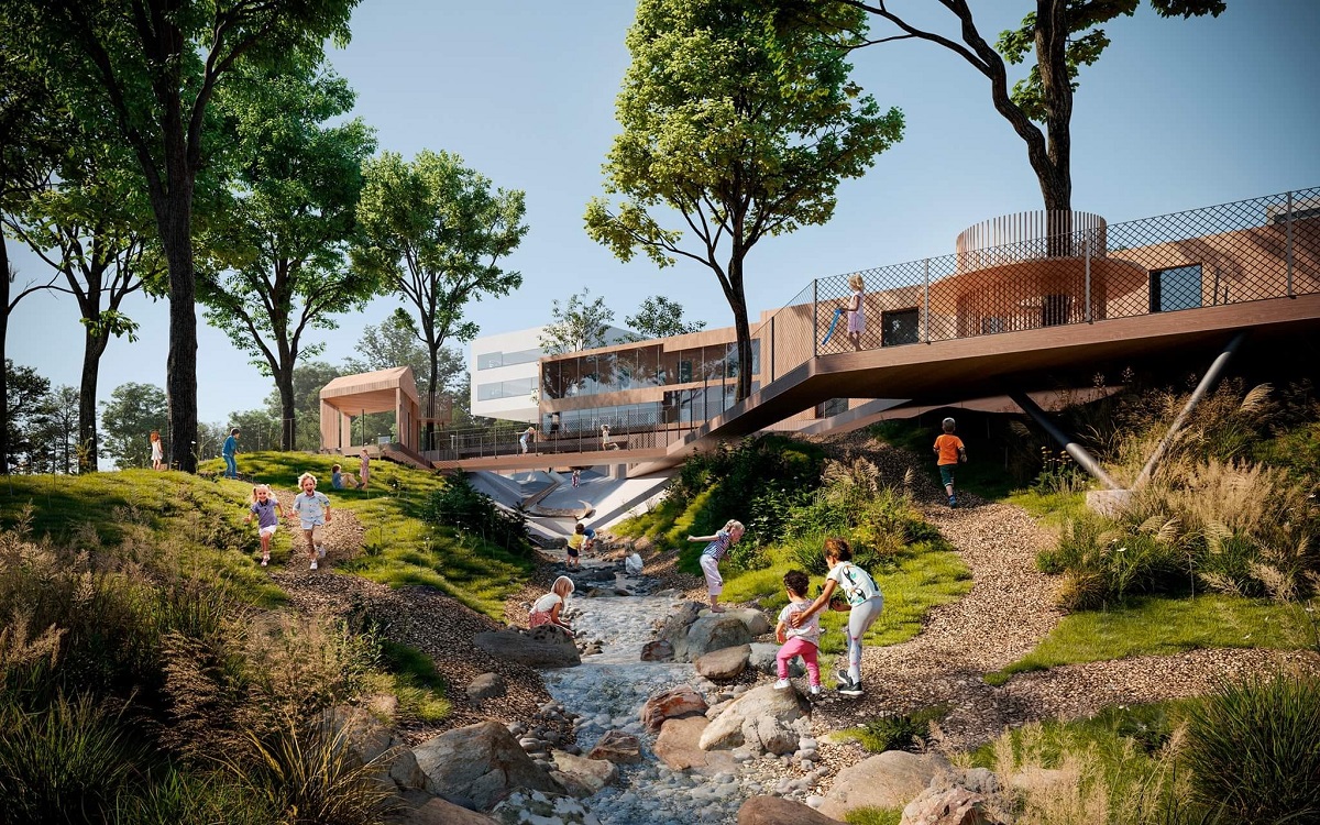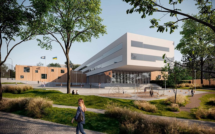 Школа на 450 учнів і садок на 70 місць будуть у комунальній власності. Проєктом передбачено спортивну зону з різними майданчиками, басейн та укриття. Ділянка, на якій збудують освітній комплекс, межує із парком. Тож спортивними майданчиками у позаурочний час зможуть користуватись усі мешканці району, повідомив Зубач. Рекреаційна площа перед школою стане комфортним громадським простором.