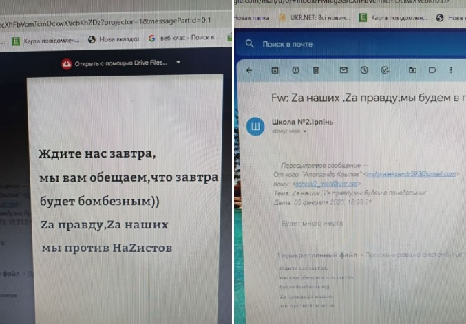 Електронний лист надійшов нібито від росіянина зі словами: «ждите нас завтра, мы вам обещаем, что завтра будет бомбезным».