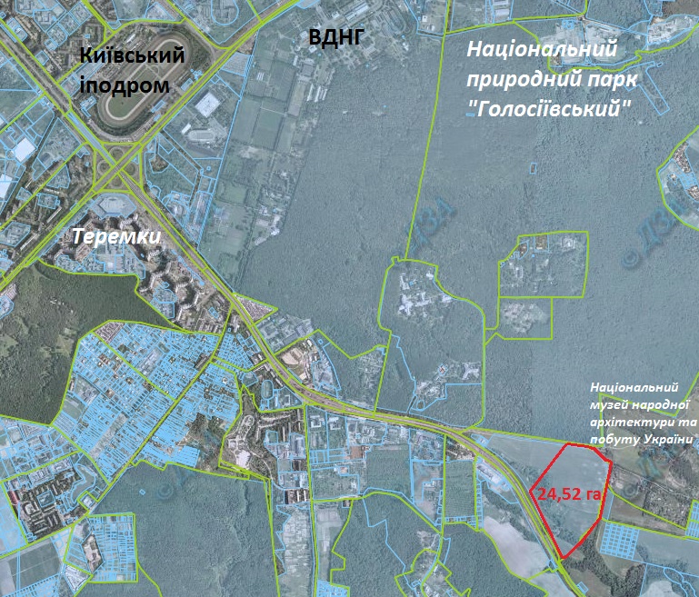 Компанія, яка орендує 16 гектарів у межах охоронної зони Національного музею народної архітектури та побуту «Пирогів» у Києві, планує збудувати великий житловий комплекс.