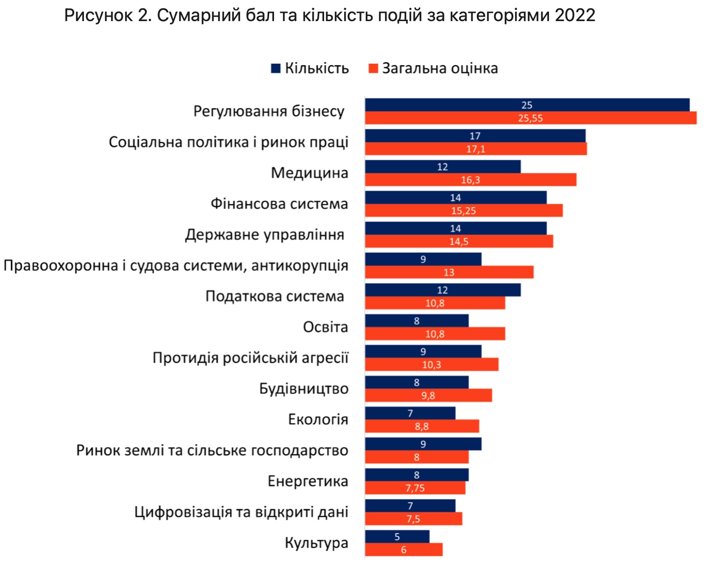 Серед усіх прийнятих за 2022 рік нормативних актів експерти Індексу реформ платформи VoxUkraine виокремили 164 найважливіших, які мають великий вплив на економіку і суспільство.