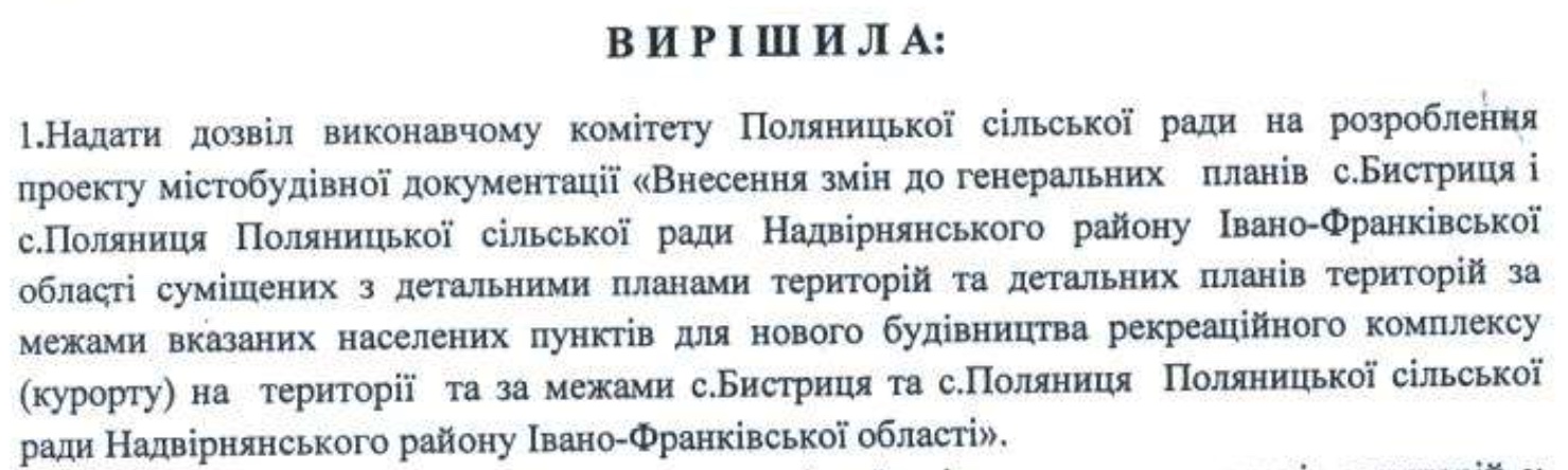 Наприкінці 2022 року ця компанія отримала дозволи від Поляницької та Усть-Чорнянської сільрад на підготовку до будівництва ще двох курортів — «Бистриця» та «Турбат».