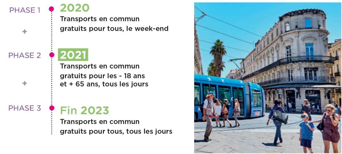 У 2020 року Монпельє скасувало оплату в громадському транспорті у вихідні дні, а 2021 року дозволили їздити безкоштовно жителям молодшим 18 років та старшим за 65 років у всі дні тижня. 21 грудня 2023 року оплату скасують взагалі.