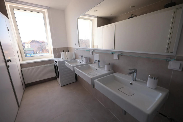 У триповерховому будинку площею майже 800 квадратних метрів повністю замінили інженерні мережі та вікна, а також відремонтували покрівлю, підготували кімнати, утеплили фасад, встановили систему відеоспостереження загальних зон, та підключили Wi-Fi.