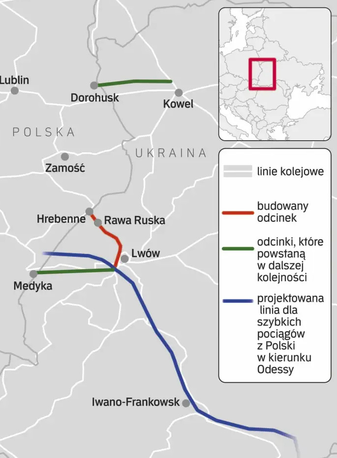 Наразі «Укрзалізниця» вже уклала договір із польським центральним комунікаційним портом на розробку техніко-економічного обґрунтування швидкісної залізниці Варшава – Львів. Також у планах будівництво швидкісної лінії Варшава – Київ.