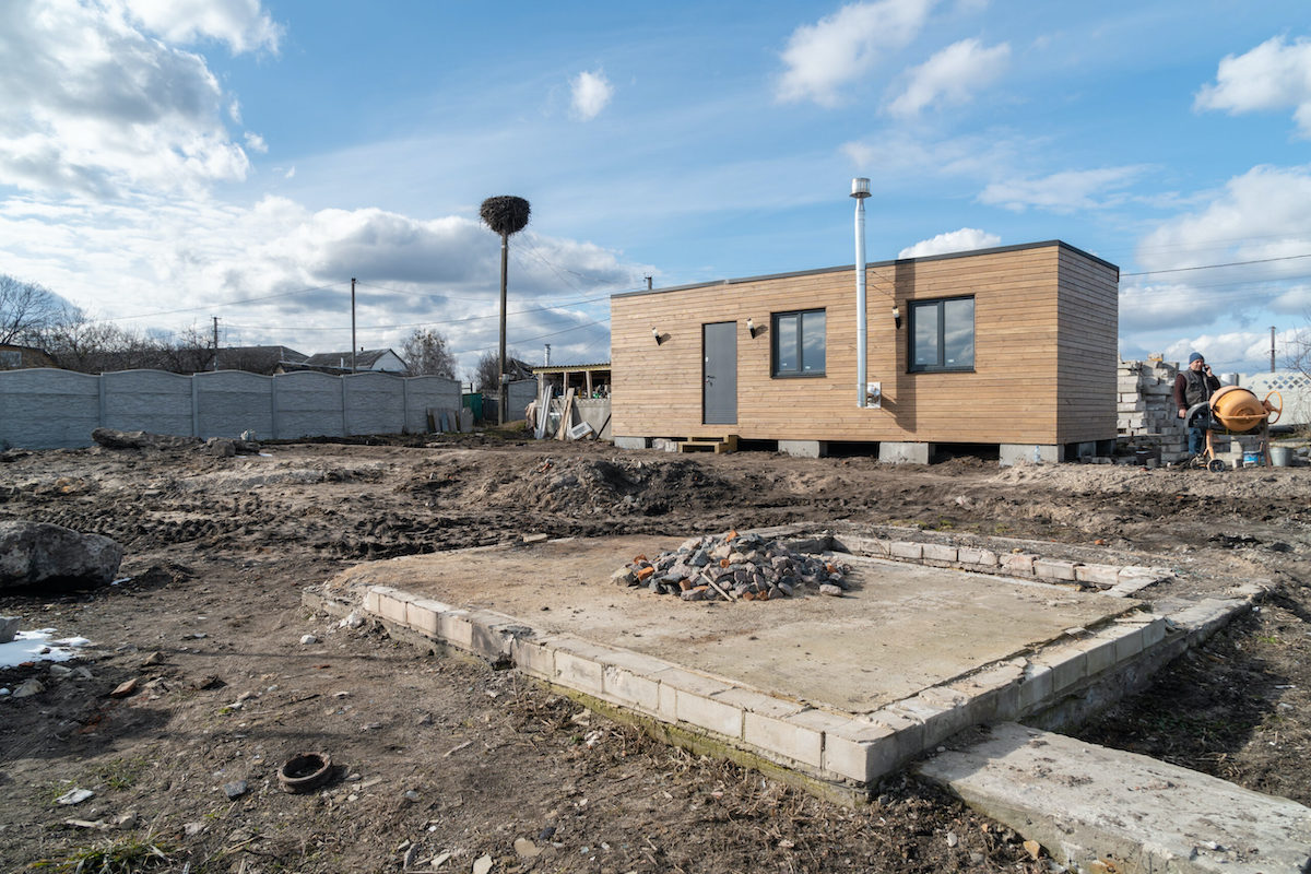 Перші будинки встановили у Бучанському районі, один із них — у селі Ніжиловичі для родини, чиє житло було зруйновано російським авіаударом.