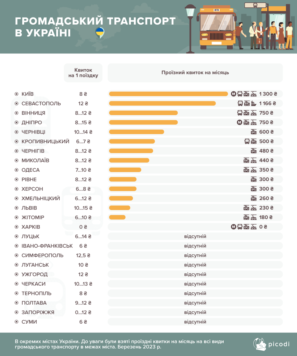Якщо порівнювати міста України, то найдорожчий проїзний знов-таки в Києві. Укладачі включили у ретинг окупований Севастополь, який посів друге місце з 1 166 гривнями.