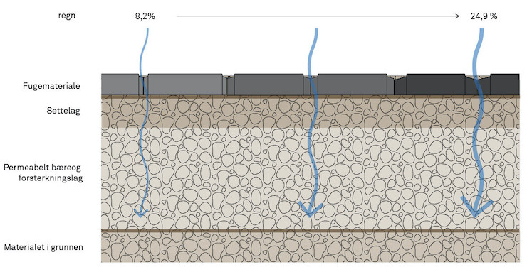 Залежно від зазорів, покриття може забезпечити до 28% водопроникності, що вдвічі вище за норвезькі стандарти. Таку плитку можна використовувати для тротуарів, парків, площ, а також паркінгів.