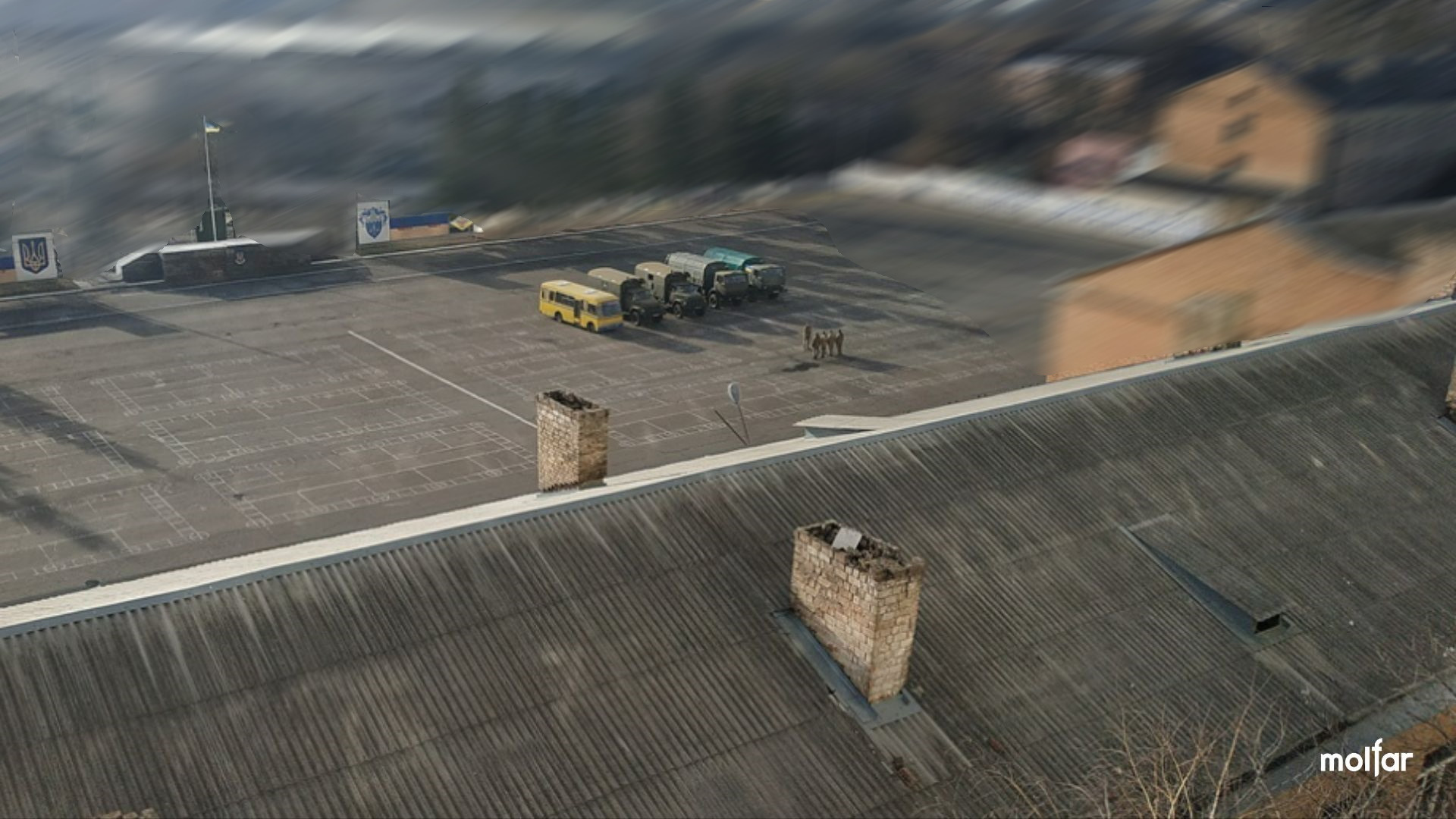 Вид з вікна військової будівлі. На фото можуть опинитися нетипові споруди, за якими легко ідентифікувати місця дислокації військових.
