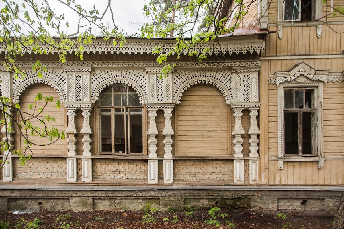 Ліва веранда простягається уздовж вуличного фасаду, а права — впоперек. Ці веранди прикрашені різьбленими архівольтами. Дерев’яним мереживом причепурили карнизи та лиштви на вікнах.