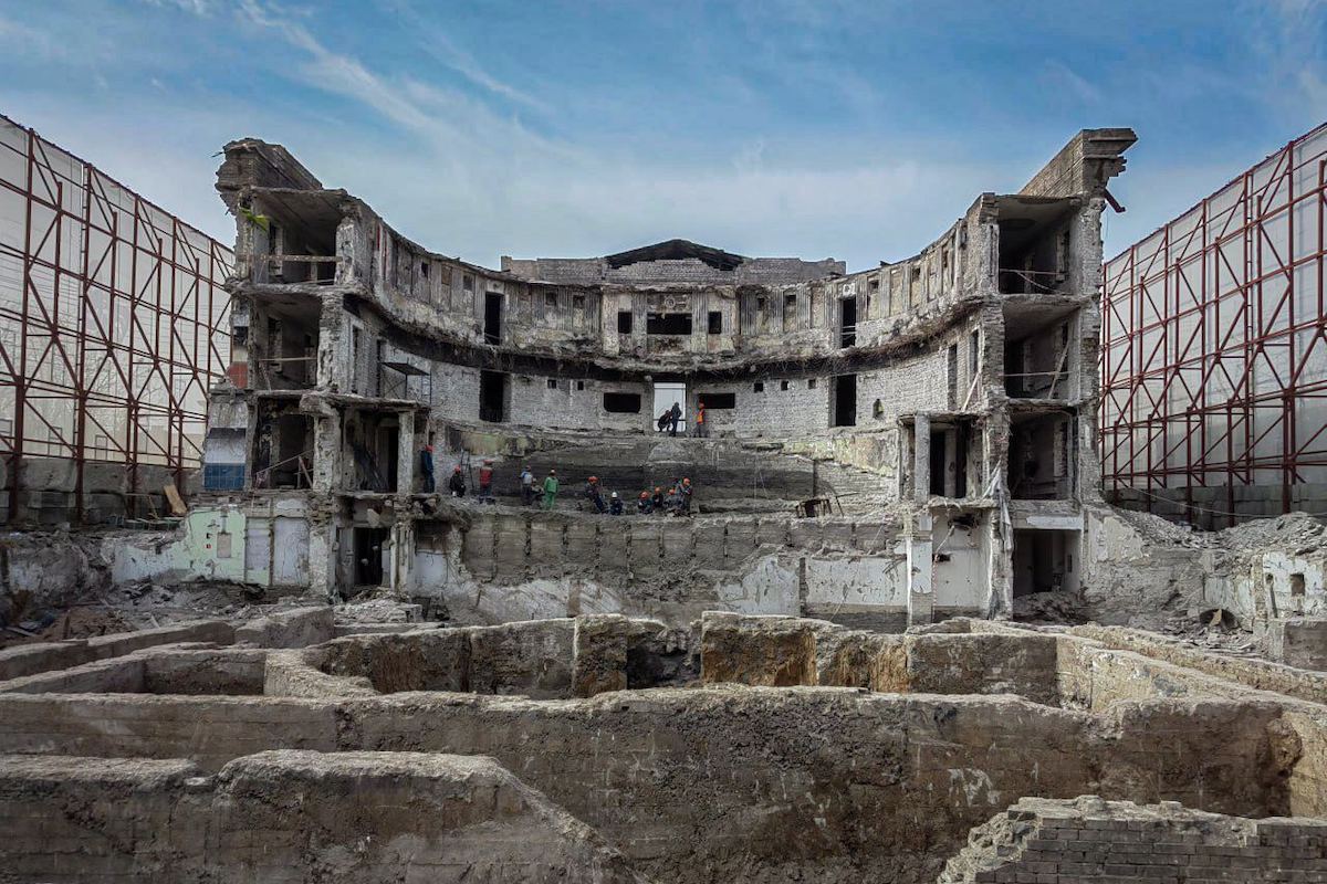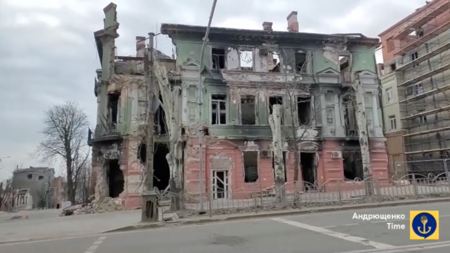 Під час облоги російською окупаційною армією було зруйновано або пошкоджено приблизно 90% будинків Маріуполя. Зараз росіяни активно демонтують споруди. Зокрема, зносять Драмтеатр, на який 16 березня 2022 року скинули авіабомбу, що забрала життя сотень людей, що там переховувалися. Зараз будівля виглядає так: