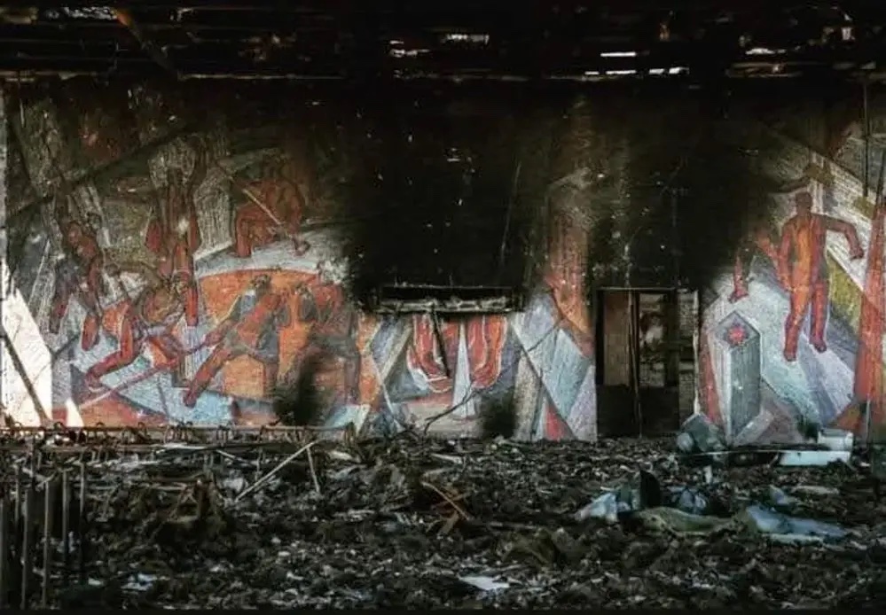 До російського вторгнення на вокзалі було мозаїчне панно 1975 року.