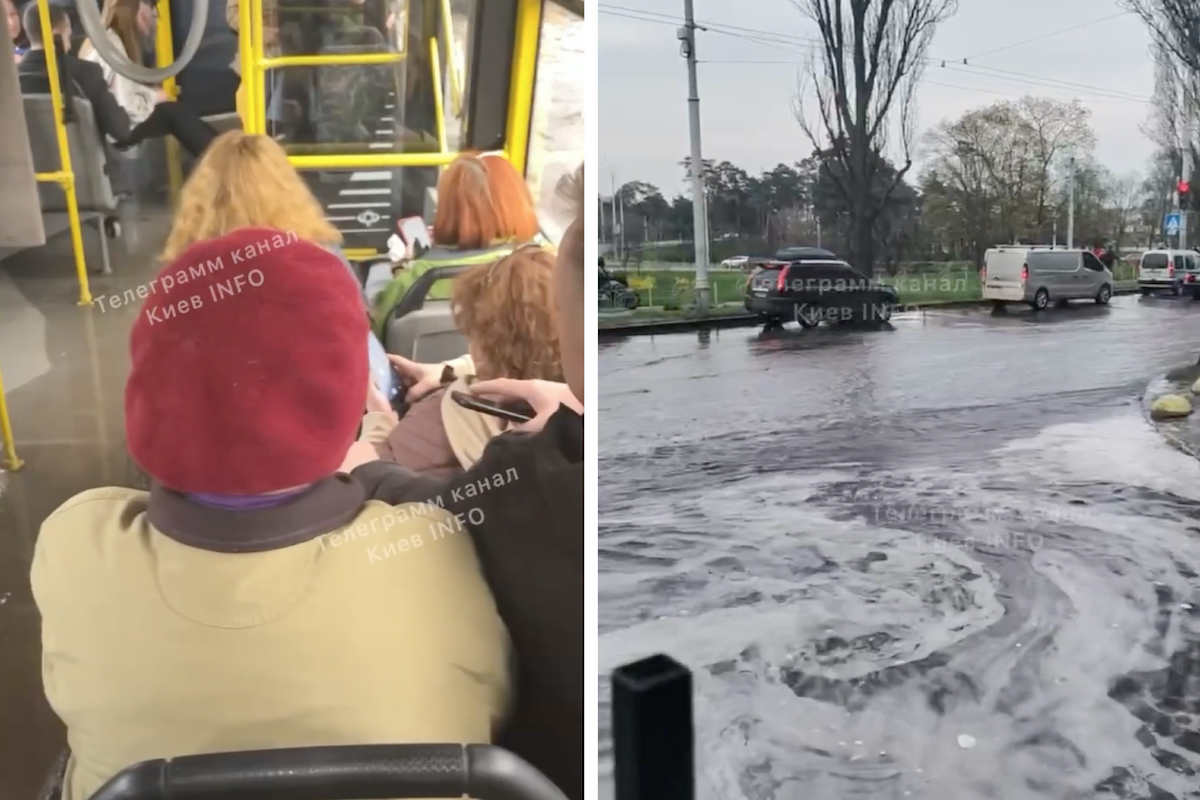 Затопило Броварський проспект, проїжджу частину, тротуари, навколишні подвір’я та парки — у телеграм-каналах публікують відео потопу. На деяких роликах видно затоплені салони автобусів. У деяких будинках зникло водопостачання.