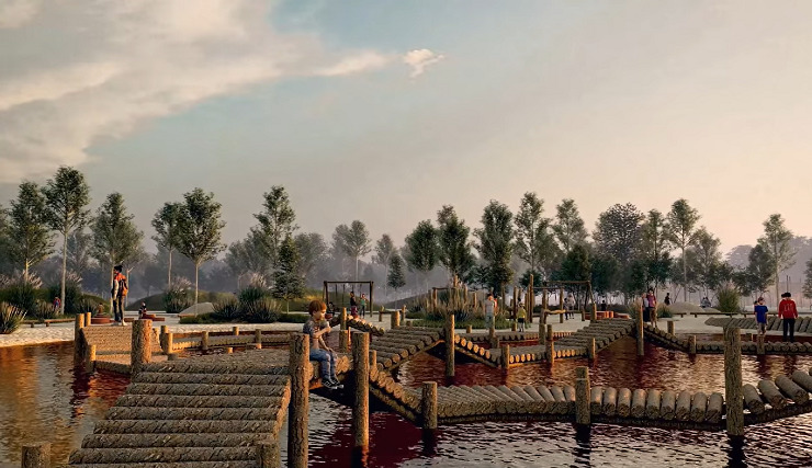 Також передбачені майданчики для мінігольфа, інтерактивні зони відпочинку для людей з інвалідністю (наповнені тактильними елементами для людей з вадами зору, підняті площини до клумб, ігрові столи та спортивне обладнання, підлаштовані для людей у візках).